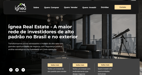 A Ígnea Real Estate é uma imobiliária especializada em ativos estressados e imóveis de alto padrão, conectando proprietários e investidores no Brasil e no exterior. Nosso papel é transformar oportunidades complexas em negócios seguros, ágeis e rentáveis.
